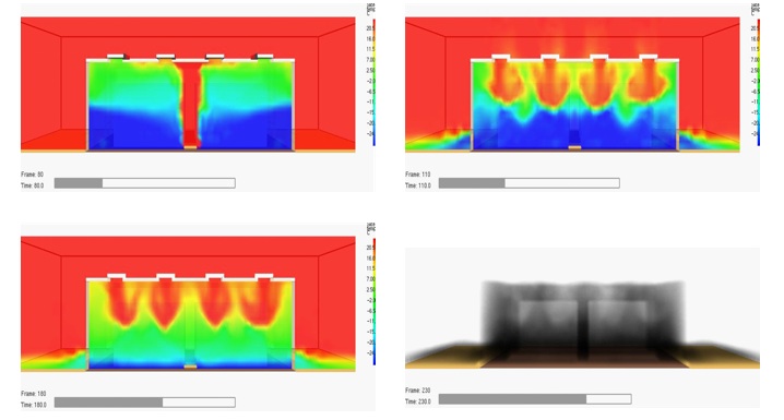Figura 4. Plano de temperaturas y evacuación del humo con ventilación forzada en una cámara frigorífica.